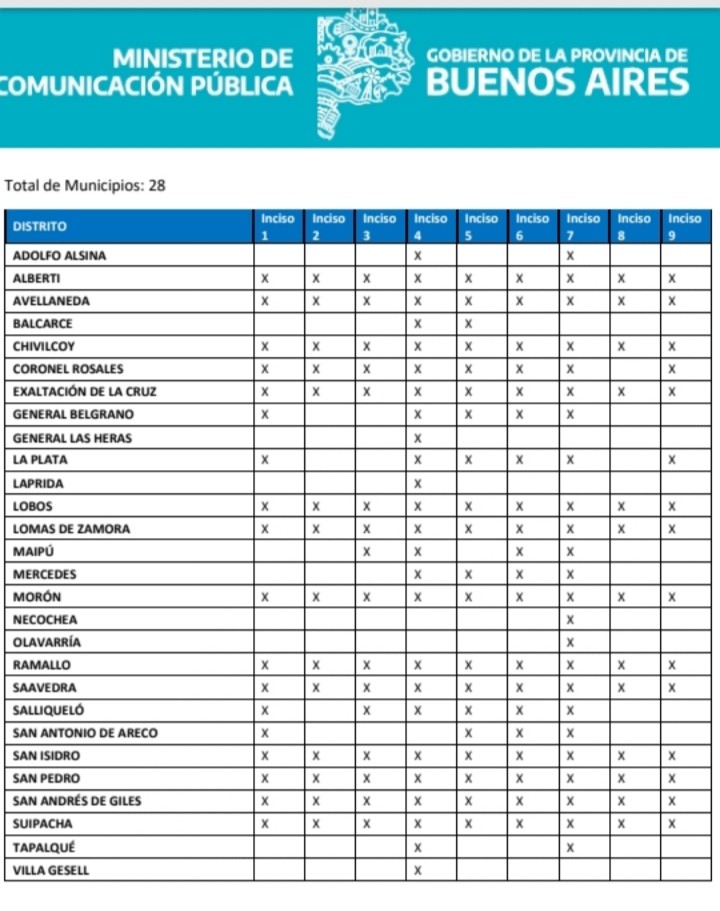 De los 135 municipios sólo 72 elevaron las solicitudes, de las cuales sólo fueron aprobados 28 municipios que hicieron la presentación apropiada de los distintos protocolos sanitarios y de funcionamiento. Y de esos 28 distritos sólo 14 podrán habilitar la totalidad de las actividades exceptuadas por el gobierno nacional.