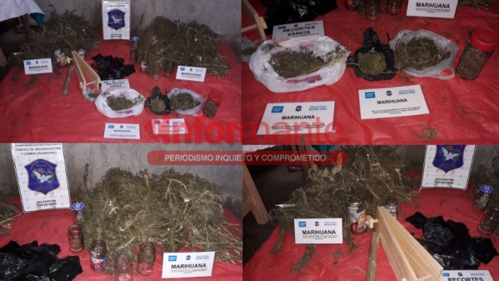 En el día de ayer la Fiscalía tematizada en Drogas, a cargo de la Dra. Verónica Marcantonio efectuó un allanamiento en una vivienda de Villa Gral. Savio en el marco de una investigación por venta de estupefacientes. En el lugar se secuestraron 2 kg de marihuana y se aprendió a un individuo de 28 años. Foto: (Diario el Informante).