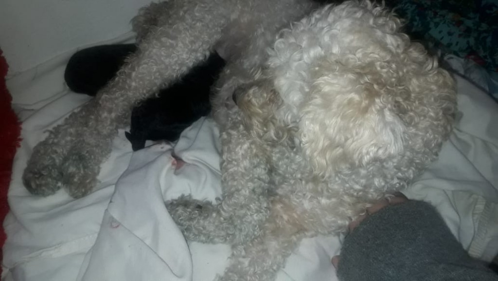 Fue entonces que cuando se dieron cuenta de la situación Dorys estaba con dos cachorritos a su lado, refugiados en el calor de mamá.