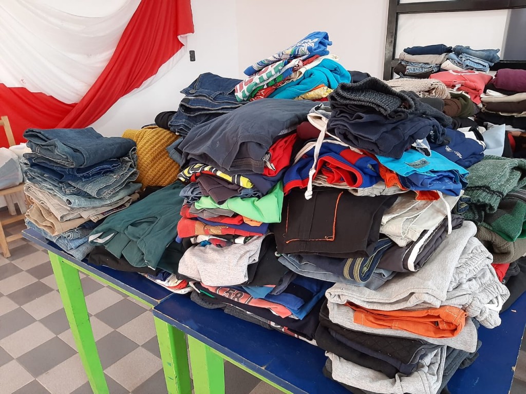 "Básicamente comenzamos con la clasificación de todas las donaciones y armar el ropero con lo que nos llegó en estas primeras semanas" explicó Nazareno Almaraz vía whatsApp a la Radio Ramallo.