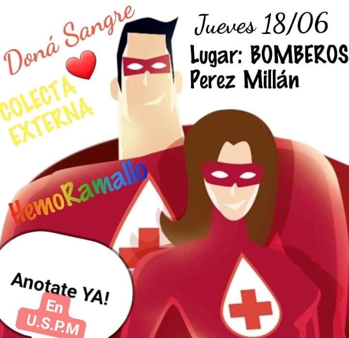 Desde el facebook de Hemoterapia del Hospital "José María Gomendio" informaron que el jueves 18 de junio van a estar en la localidad realizando una campaña para sumar al banco de sangre local.