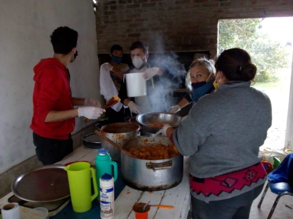Empezamos a trabajar desde las 8a.m, con barbijos, y guantes. Mantuvimos distancia entre nosotros, y obviamente con la gente que empezó a llegar con sus tupper a partir de las 13hs.