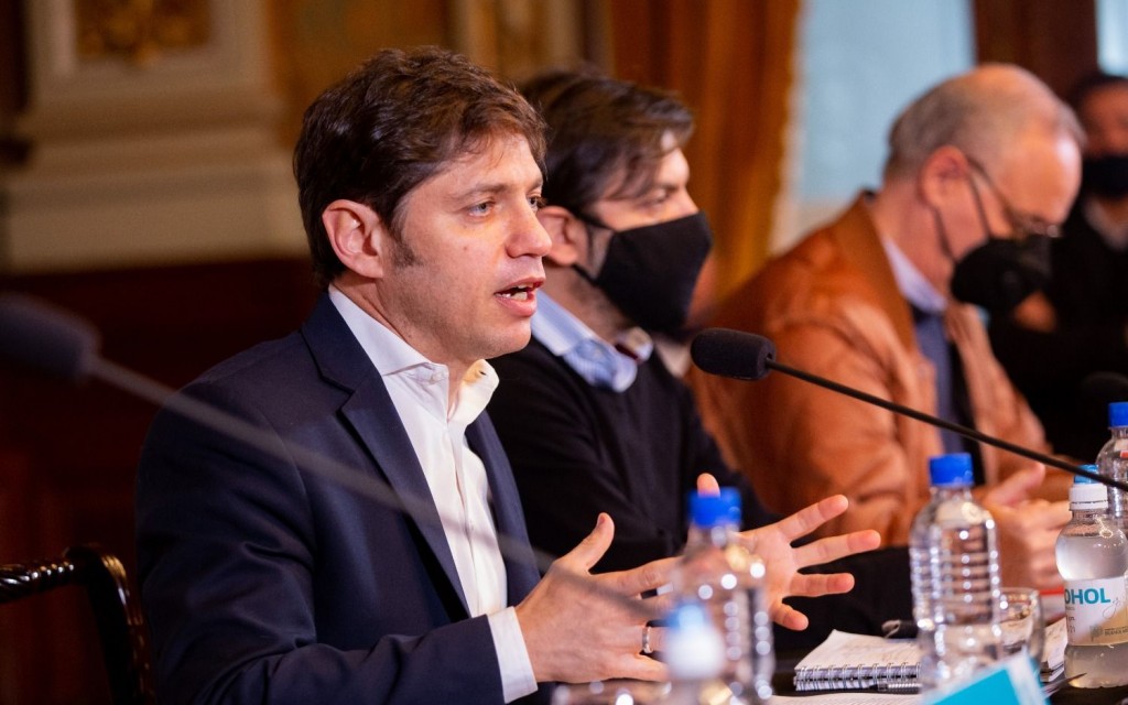Kicillof estuvo acompañado durante el anuncio por el jefe de Gabinete, Carlos Bianco, y los ministros de Salud, Daniel Gollan, y de Trabajo, Mara Ruiz Malez.
