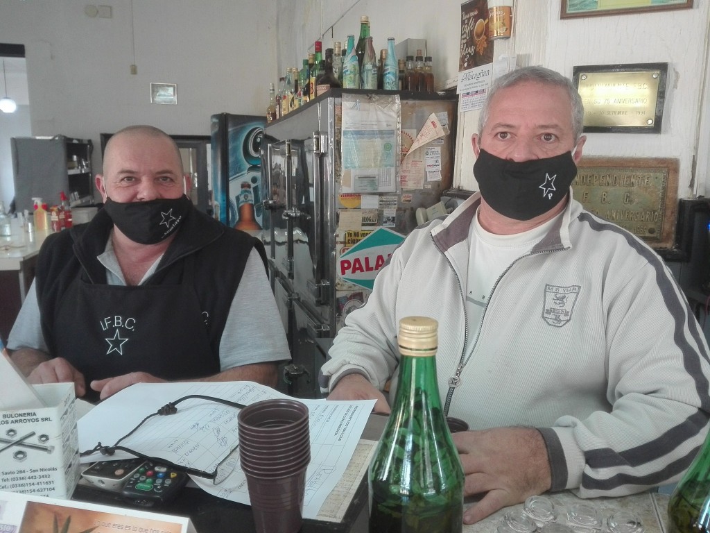 Hay alcohol 70/30, alcohol en gel y todos tienen sus barbijos. No hay abrazos, pero sí algunos codazos y distanciamiento social. El café se viene después de la caña y seguramente a cerca del mediodía, será el momento del aperitivo con el queso y las aceitunas.