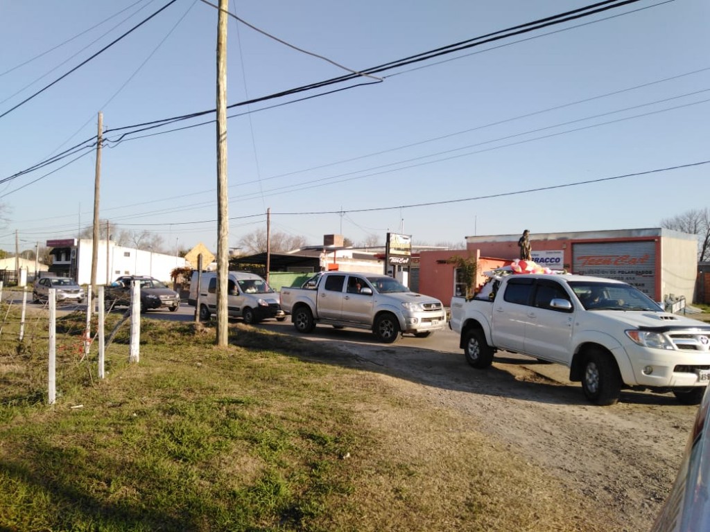 En el día del Santo, los devotos de la parroquia Cristo Salvador realizaron una procesión en autos para pedir la detención de la pandemia en los barrios de la localidad. Llevaron también las imágenes de la Virgen de Luján y San Cayetano.