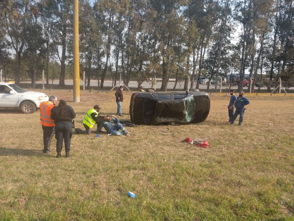 Fecha y hora actual, por razones se tratan de establecer en Camino de la Costa altura km 4,7 (frente fabrica Bunge) carril sentido norte-sur automóvil fiat siena , conducido por NN Masculino mayor de edad y  acompañante  masculino mayor de edad, pierde el control, ocurriendo despiste y tumba sobre banquina, resultando herido acompañante y trasladado a hospital Ramallo. Carácter lesión leve. Conocimiento Ayudantia Fiscal Ramallo. Interviene UFI nro. 2 dra. Padulo DJSN. Presente Policía Científica al lugar diligencias de rigor.