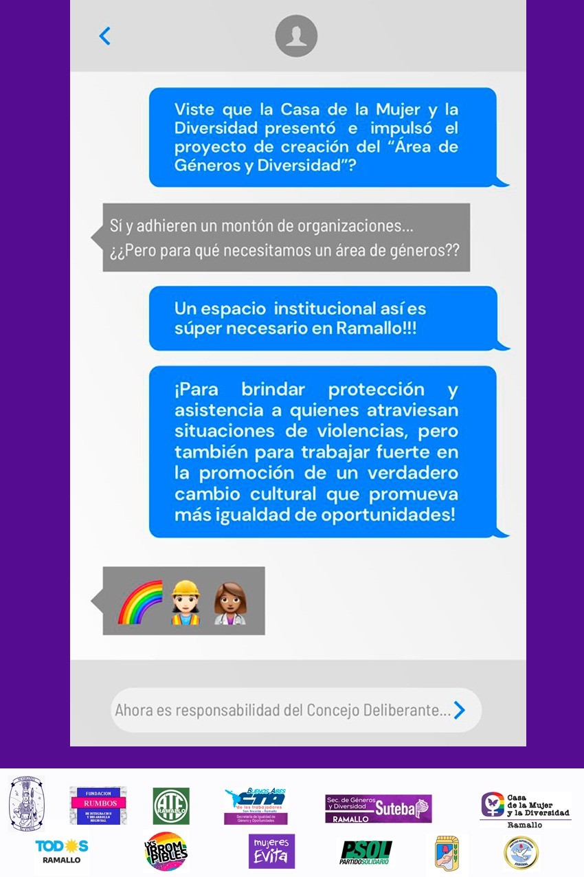 Mediante un comunicado enviado por whatsApp la solicitan al concejo deliberante la aprobación del Proyecto de ordenanza que crea el área de géneros y diversidad.