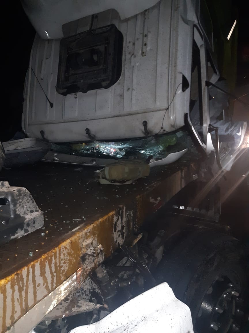 Buenas noches siendo las 23:12 fue requerido el servicio de Bomberos Voluntarios por accidente en Ruta Nacional 9   km 190 sentido descendente, al lugar se dirigió una dotación de bomberos que a su llegada se encontraron con una colisión por alcance entre dos camiones Mercedes Benz