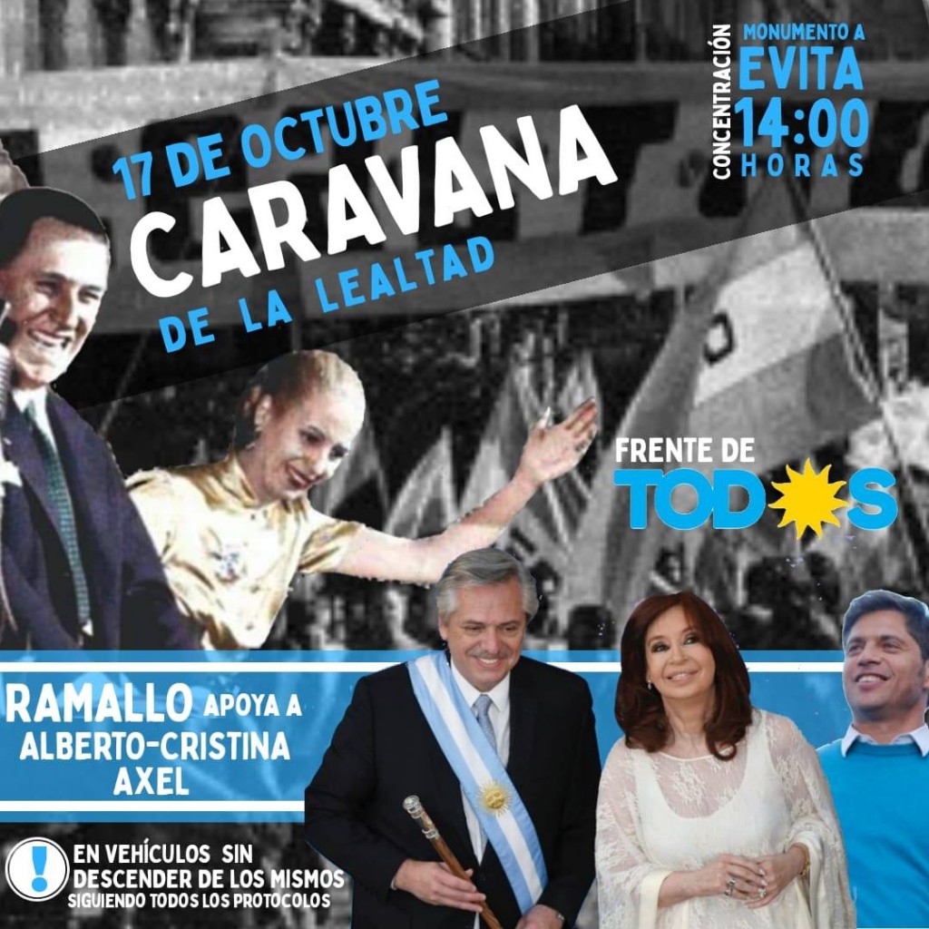Todos en el auto o balcón con sus banderas   La información fue publicada en el facebook del Frente de Todos Ramallo