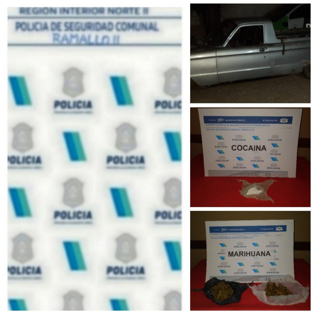 FECHA 07/11/20 siendo las 18:00 hs. Personal GTO circunstancias que recorría jurisdicción en prevención en calle 12 de octubre y Traverso hace detener la marcha de automóvil Camioneta Ford Ranchera con tres sujetos masculinos en su interior, donde, uno de ellos intenta darse a la fuga de a pie siendo alcanzado por efectivo policial. Que ante esta situación se procede a realizar cacheo a los tres masculinos. Poseyendo en su poder un bagullo de cocaína con cinco gramos, un bagullo de marihuana por 25 gramos y un tercer bagullo de marihuana por 1p gramos. Procediendo a la aprehensión de los tres trasladados a sede policial notificándolos Art 60 CPP por el delito Infracción ley 23737 2do párrafo recuperando libertad los tres masculinos, intervención UFI 1 San Nicolás. Asimismo, se secuestra rodado por carecer de documentación intervención Juez de Falta Municipal.