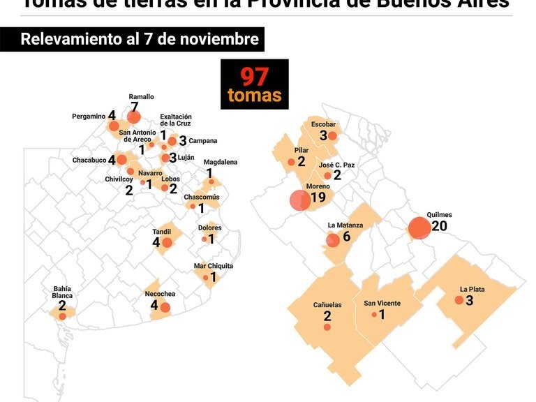 https://www.infobae.com/politica/2020/11/14/el-mapa-de-las-tomas-de-tierras-en-la-provincia-de-buenos-aires-97-usurpaciones-y-casi-mil-hectareas-ocupadas-en-25-municipios/