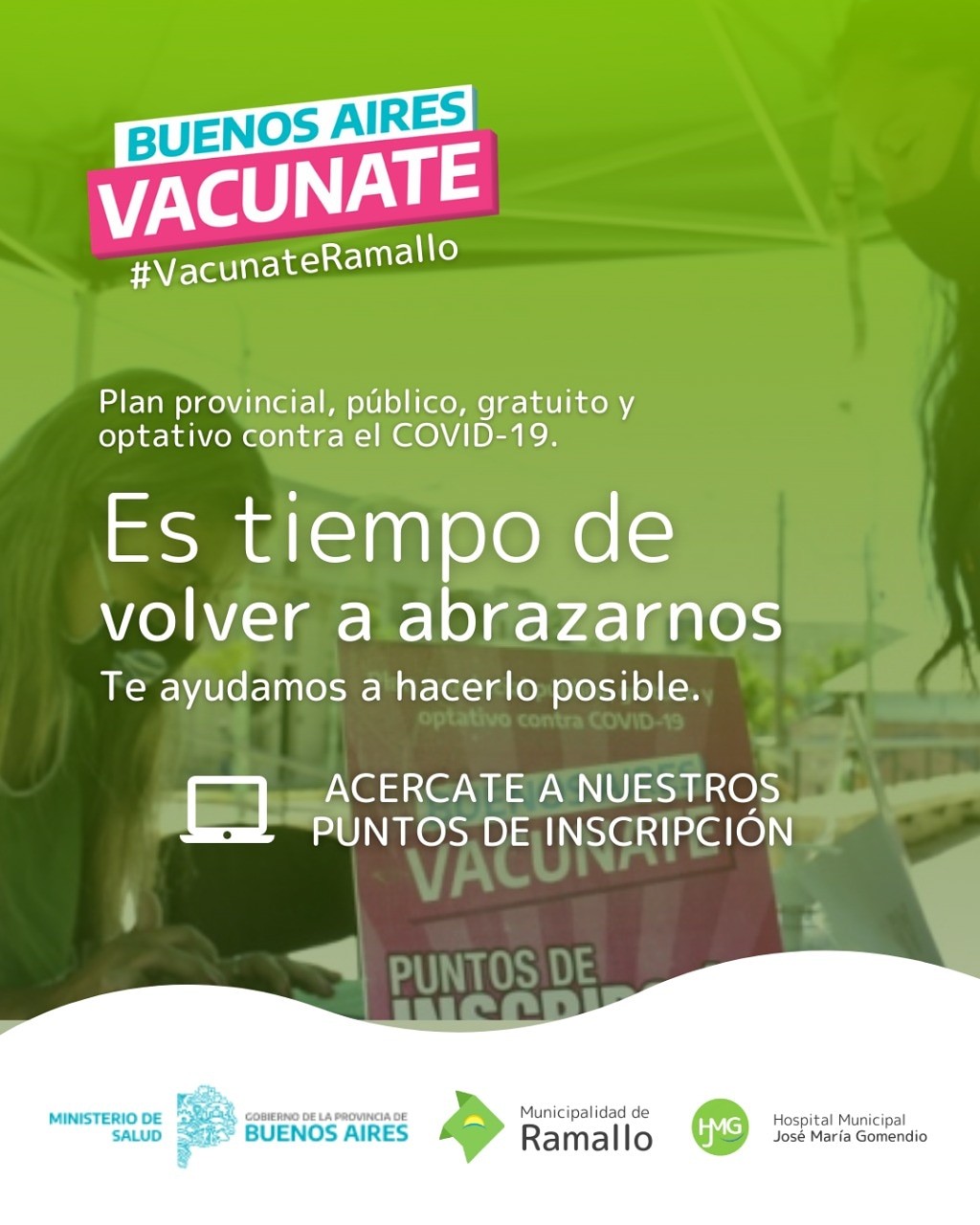 La Secretaría de Desarrollo Humano y Promoción de la Salud realizará puntos de inscripción en las cinco localidades del partido de Ramallo con el fin de ayudar a los vecinos en el registro para la campaña provincial de vacunación contra el COVID-19.