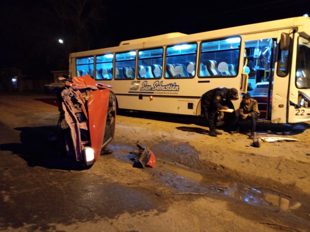 Pudo haber tenido otro final y por milagro no sucedió. En la madrugada de este miércoles un Volkswagen Gol perdió el control y choco con un colectivo que presta servicios para privados en el parque COMIRSA. El auto quedó semi destruido y con dos ruedas en el aire como consecuencia del impacto.