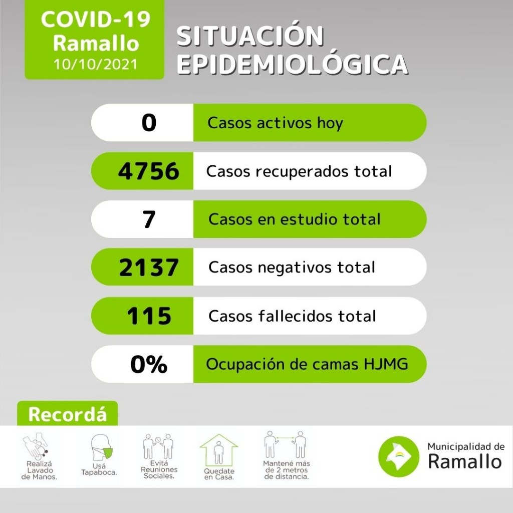 Por primera vez desde el 12 el de abril de 2020 Ramallo tiene cero casos de COVID-19.
