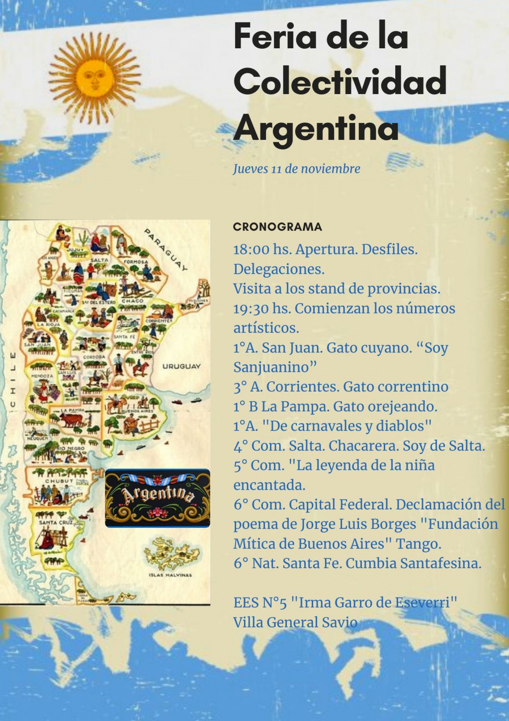 Se viene la Feria de la Colectividad Argentina en la Escuela Secundaria 5 en Villa General Savio