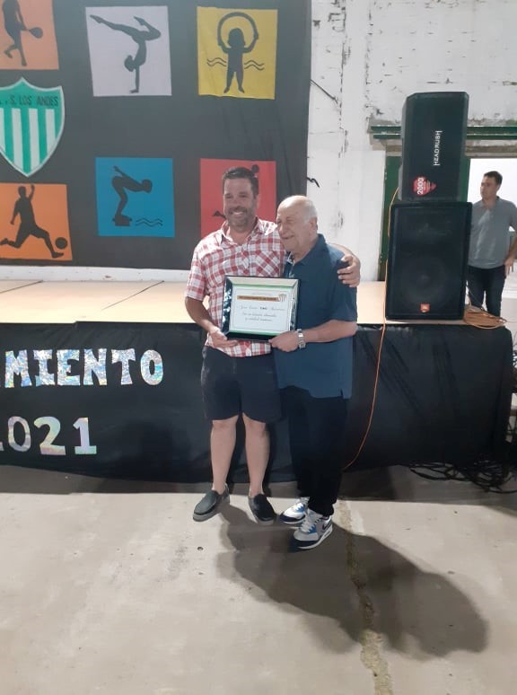 El pasado viernes se realizó en el camping del club Los Andes, la Fiesta del Reconocimiento al Deportista. Hubo varios momentos muy emotivos, porque fue un gran año para el club, pero sin dudas el momento de mayor emoción fue cuando se realizó el reconocimiento a “Caio” Balestrino, un emblema del club, como jugador primero, dirigente después y colaborador siempre con su querida institución. Luego de la entrega del presente, Diego Bordi, presidente y “Caio”, se confundieron en un fuerte y sentido abrazo que hizo emocionar a todos. (Ampliaremos).