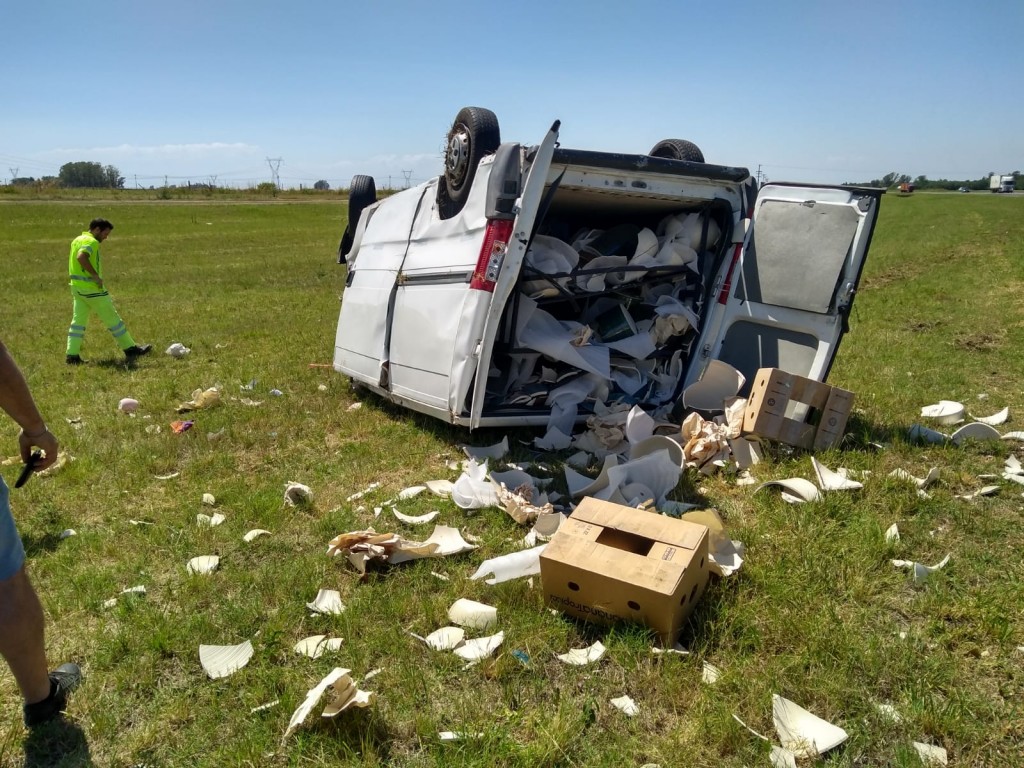 Este martes en la ruta nacional 9 km 221 carril Buenos Aires- Rosario por razones que se deberán establecer Matías Sanso de 41 años de El Palomar, perdió control de la camioneta Fiat Ducato Blanca dominio IFR-528 en la que circulaba, transportando macetas de cerámica.