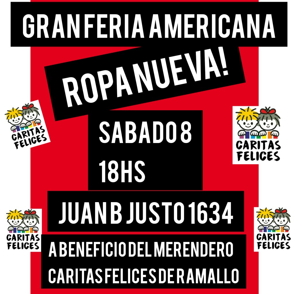 Desde el Merendero Caritas Felices que está ubicado en la ciudad de Ramallo publicaron en su cuenta de Facebook que van a estar realizando una gran Feria americana para poder cubrir los gastos que tienen de luz. “Lo recaudado será para pagar una deuda de luz de más de 150 mil pesos” publicaron con un flyer sobre la situación que están atravesando. Un notable esfuerzo realizan Alfonsina Rey y un grupo de vecinos que asisten a una importante cantidad de familias diariamente.