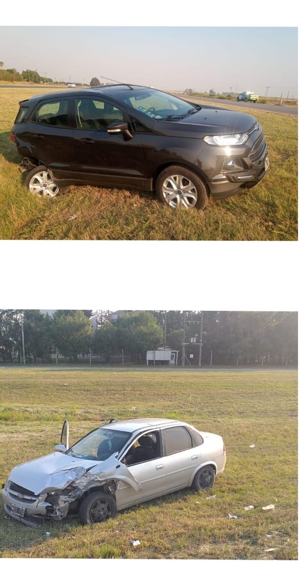 Personal policial de la Estación Comunal Ramallo Segunda, de Villa Ramallo informó que a las 9 horas a raíz de un llamado telefónico personal de esa dependencia se trasladó a la Ruta 9 kilómetro 211 sentido Buenos Aires-Rosario, donde por razones que se deberán analizar, un automóvil Chevrolet Classic dominio MUQ794 conducido por Omar Fernando Antequeda de 31 años que trabaja como remisero, y se trasladaba por la ruta nacional con un pasajero identificado como Braian Thomas Exequiel Alegre de 22 años colisionó con automóvil Ford Eco Sport dominio MM680 conducido por Godinho Nicolás Mendes de 27 años.
