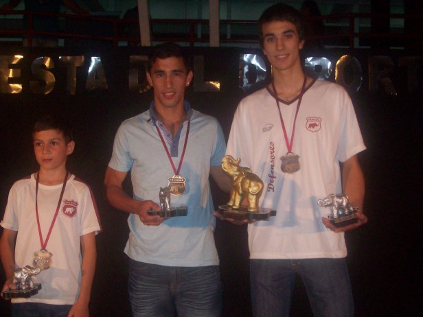 Este viernes por la noche se realizó la 29ª edición de la tradicional Fiesta del Deporte del club Defensores de Belgrano. El ganador del Elefante de Oro 2014 fue Julián Gasol (Básquet), que estaba ternado con Hernán Ruben (Fútbol) y Marcos Oulego (Natación). El reconocido y destacado basquetbolista nicoleño Víctor Baldo fue quién entregó el Elefante de Oro, previamente, el Presidente Granate, Mauricio Dalledonne le entregó a Baldo un elefante de oro en reconocimiento a su trayectoria. Los ternados y ganadores en cada disciplina fueron los siguientes: Básquet Divisiones Inferiores: Fausto Dignani, Fausto Gómez y Marcos Matkovich (Ganador)) / Básquet Primera División: Rafael Ayala, Jerónimo Bruzzesi y Julián Gasol (Ganador) / Fútbol Divisiones Inferiores: Elías Florenzano, Nicolás Henry (Ganador) y Lemuel Rosales) / Fútbol Cuarta y Primera División: Enzo Gauna, Guido Herrera (Ganador) y Mauricio Temperini / Fútbol Federal A: Diego Guidi, Hernán Ruben (Ganador) y Fernando Torrent / Gimnasia Artística: Delfina Braico, Victoria Rivera y Florencia Santa Cruz (Ganadora) / Natación: Santiago Despósito, Marcos Oulego (Ganador)y Santiago Rolandelli / Tenis: Juan Gaeto, Nicolás Marsili (Ganador) y Camila Murgala) / Voley Divisiones Inferiores: Catalina Farroni, Rocío Gutiérrez y Florencia Vaioli (Ganadora) / Voley Primera División (femenino y masculino): Anahí Cilenzo, Álvaro Musante (Ganador) y Matías Vega. Este año los abanderados fueron, Emiliano Santillán (Bandera Granate), Nelson Álvarez (Bandera Argentina) y Leonardo Mignaco (Bandera Provincial) y el himno del club lo canto con mucho sentimiento, Gustavo Dorado, hombre de sangre granate. A la hora de dirigirse a los presentes el presidente del club Mauricio Dalledonne, entre otras cosas manifestó: “Estos momentos son los mayor orgullo para quienes formamos la familia del club, ver este marco de gente, que año a año se va superando es realmente increíble, le pido un fuerte aplauso para quienes hacen día a día, que este club sea cada vez mejor”. Luego agregó “Este es el momento en que nosotros, los directivos, tenemos la posibilidad de estar cerca de todos ustedes y contarles lo que pasa en el club, más allá de las actividades deportivas. Señalo también “Tenemos la firme intención de seguir creciendo, a pesar de las dificultades económicas que se viven hoy, y nuestro primer objetivo son las obras en el centro deportivo de la institución”. Luego de repasar las mejoras realizadas en la sede y el centro deportivo durante este año, dijo: “Este fue un muy buen año en lo deportivo, los logros obtenidos por la natación a nivel provincial y nacional, en fútbol llegar por primera vez a la tercera etapa de la copa argentina, el hecho que hayan jugado en nuestro estadio grandes clubes como Rosario Central o Talleres de Córdoba, también hubo grandes logros en vóley y básquet, y el crecimiento de otras actividades, como por ejemplo el patín, que hoy cuenta con más de cien patinadoras, y otras como Handball, acrobacias en tela, comedia musical, lo que hace que no solo se crezca en los deportes tradicionales, sino también en otras actividades”. Dalledonne cerró su discurso con el recuerdo para Nicola D´Amico que recibió el aplauso cerrado de todos los presentes. En la continuidad de la fiesta como es habitual se reconocieron los logros obtenidos por los deportistas de la institución en las distintas actividades, pero también se realizaron reconocimientos para todos los que día a día aportan lo suyo para el andar y crecimiento de la institución. Es así como dirigentes, profesores, socios colaboradores, empleados, todos tuvieron su reconocimiento por parte de club. Muy buen marco de público, hubo esquemas de gimnasia artística y acrobacias en tela de excelentísimo nivel. Uno de los momentos más emotivos de la noche fue cuando recordaron a Nicola D´Amico, empleado del club recientemente fallecido. 29ª Fiesta del Deporte del club Defensores de Belgrano, una gran fiesta de la familia granate.
