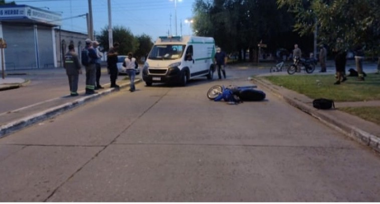 Un Ford Focus, conducido por un hombre de 57 años colisionó con una moto Guerrero Trip, conducida por un joven de 19 años, quien debió ser trasladado al hospital Gomendio.