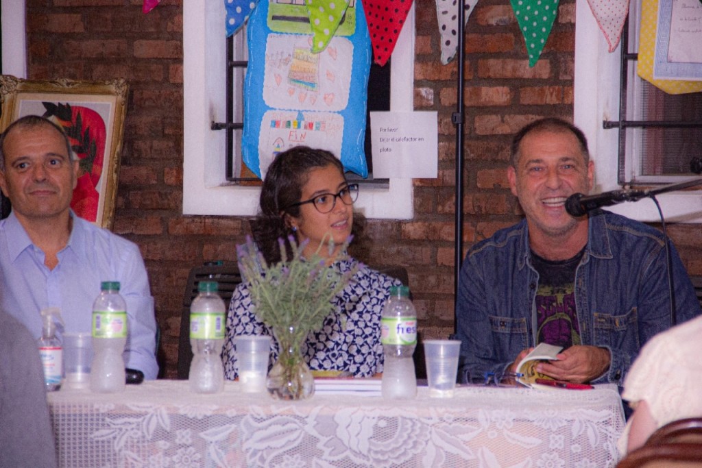 En la continuidad de la presentación del libro se dirigieron al auditorio Clara López Verrilli y Leonardo Mirenda. Luego fue Juan Mascardi quien abrió el fuego con un texto que lo hizo retornar en el tiempo hacia casualmente un 5 de marzo de 2018 cuando llegó hasta Ramallo por otras de sus pasiones la natación. En ese instante contó que fue el último texto que escribió de manera manuscrita y que lo había hecho en el club de pescadores de Colon previo a la competencia del aguas abiertas que se realiza año tras años organizado por el club Náutico. Fue entonces que empezó a leer la crónica “El video de Jonás y el suspiro de la vida”, en cada uno de los párrafos la atención abrazaba a cada una de las personas que escuchaban atentamente como describía una de las patologías más dolorosa como es el cáncer con un canto a la vida sobre la historia del futbolista Jonás Gutiérrez.