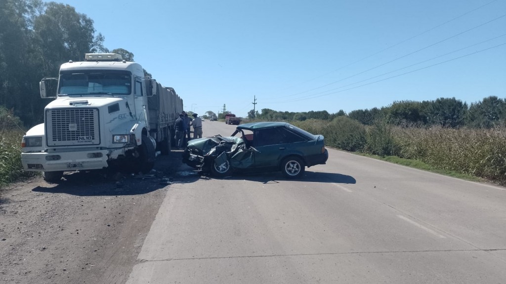 Por circunstancia que se deben establecer un camión Volvo conducido por un hombre de de 45 años, el cual se encontraba estacionado sobre la banquina, es embestido por automóvil Ford Escort en el que se movilizaba un joven de 23 años, tras impacto el conductor del rodado menor fue trasladado al Hospital Gomendio.
