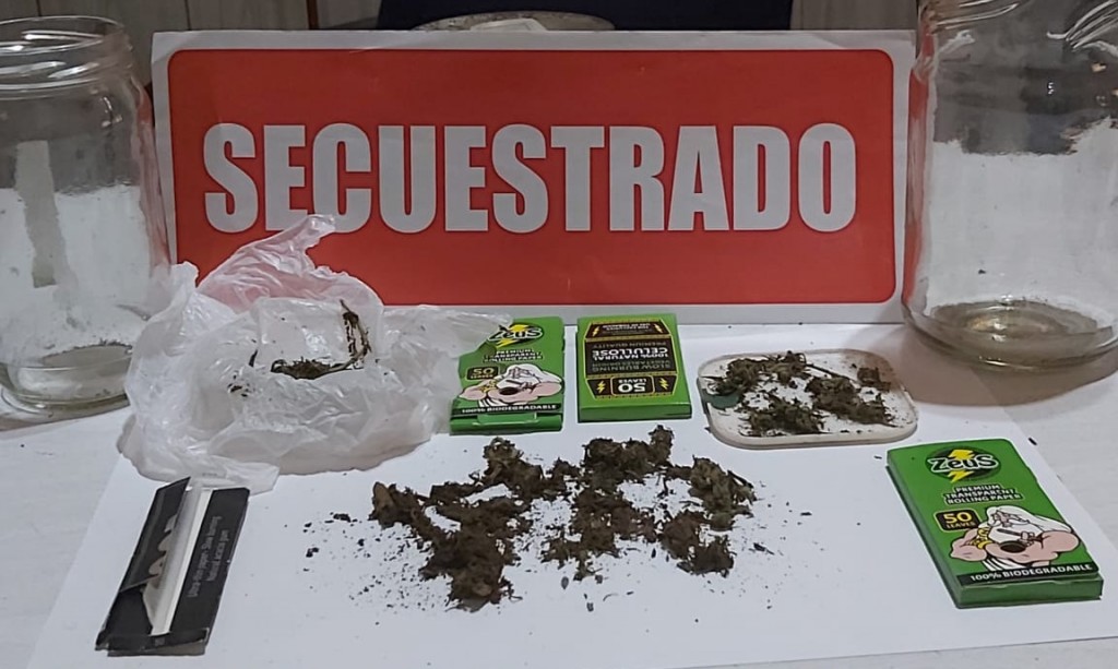 El joven estaba acompañado por otro muchacho de 22 años, tras la requisa se secuestró un cigarrillo con sustancia verde parduzca y un frasco transparente de plástico conteniendo cannabis saliva (marihuana) un total de 4.46 gramos así también como “papelillos varios”. Tras la consulta a Fiscalía en turno se dispuso la notificación del artículo, posteriormente recuperaron la libertad.