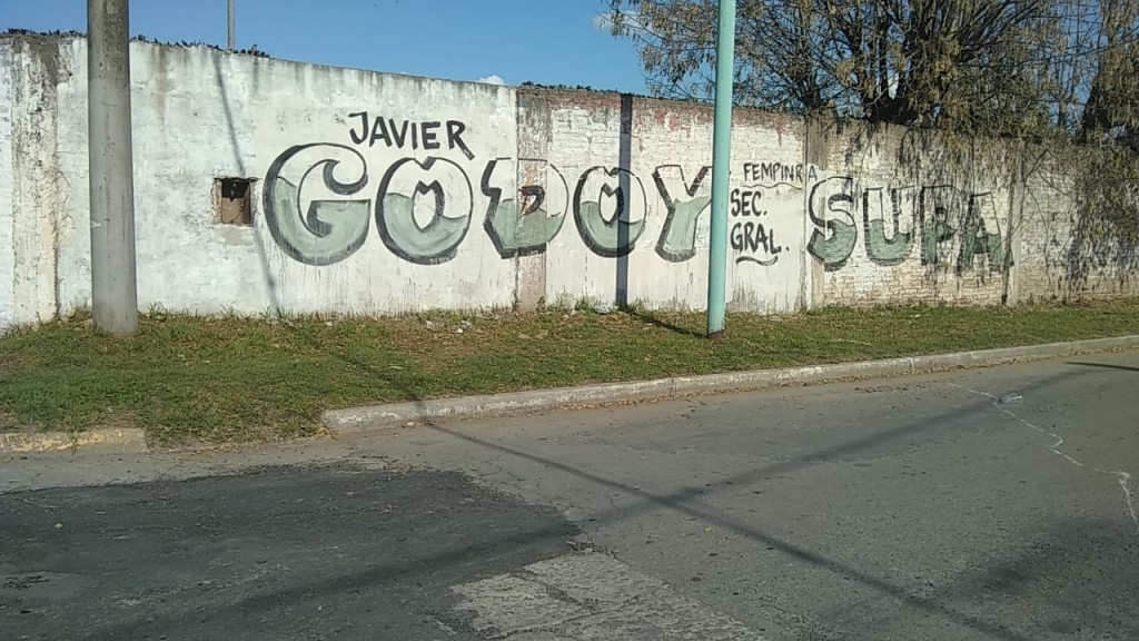 De la noche a la mañana aparecieron diferentes paredones y tapiales pintados con la leyenda Javier Godoy conducción SUPA (Sindicato Unido de Portuarios Argentinos). Lo que quedó claro es que de no cambiar la situación sobre los espacios pintados, se pueden venir acciones legales, porque si de algo están cansados muchos vecinos es de las pintadas sin previo aviso, cuando para algunos son fuentes de ingreso porque se venden o alquilan como espacios publicitarios.