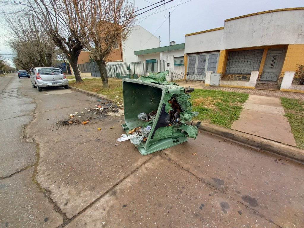 Los hechos de vandalismo no cesan. Nuevamente los contenedores de la basura fueron objeto de destrucción. Esta vez le tocó a uno de los recipientes que están ubicados en Calle Sarmiento y Lavalle de Villa Ramallo.