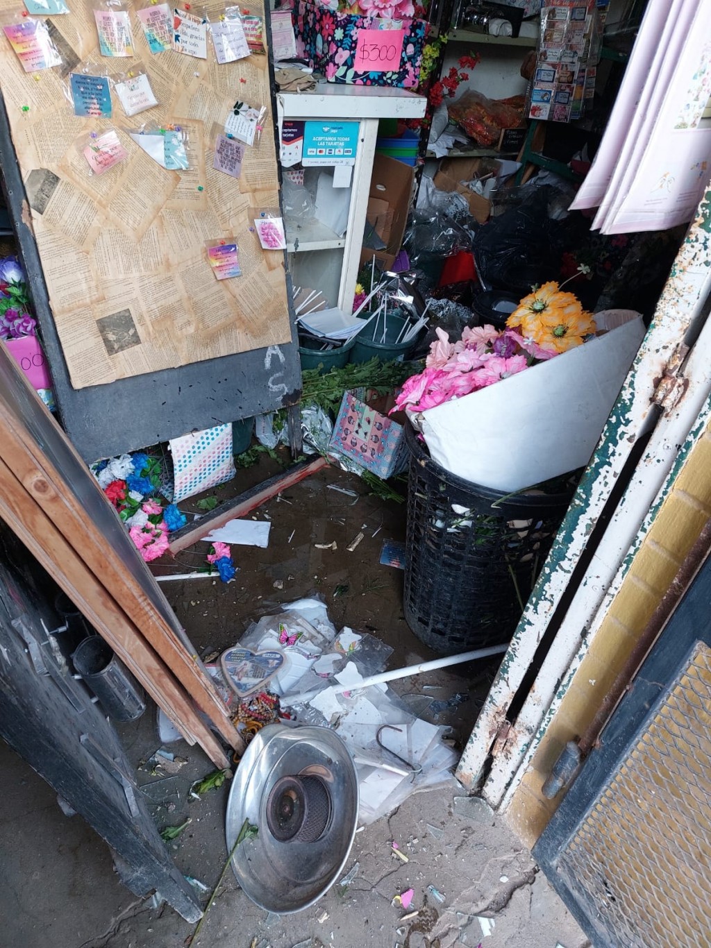 Florería La Paz es el único punto de ventas de flores que se encuentra frente al cementerio local. Este martes se conoció que vándalos ingresaron destrozaron todo lo que tenían a su alcance y robaron objetos de valor.
