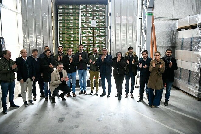 El ministro de Desarrollo Agrario de la provincia de Buenos Aires, Javier Rodríguez, estuvo presente en un significativo acto que marcó un hito en la industria frutícola. Se celebró la primera exportación de kiwis con sello de Identificación Geográfica y Orgánico Argentina hacia España por parte de la cooperativa CoopeKiwi, ubicada en Miramar.