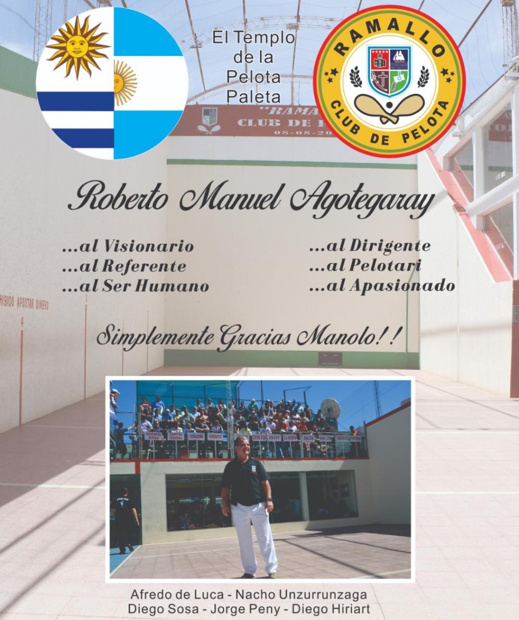Ramallo Club de Pelota, agradece a todos los pelotaris, jueces, medios de comunicación, público presente y equipo de trabajo, por haber hecho posible una vez más el éxito alcanzado. Más de 400 personas se hicieron presente durante los dos días.