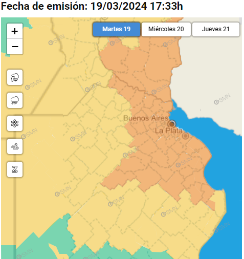 El Servicio Meteorológico Nacional emitió una advertencia de nivel naranja por fuertes tormentas y posible caída de granizo para el Área Metropolitana de Buenos Aires (AMBA) y partes de la provincia de Buenos Aires.
