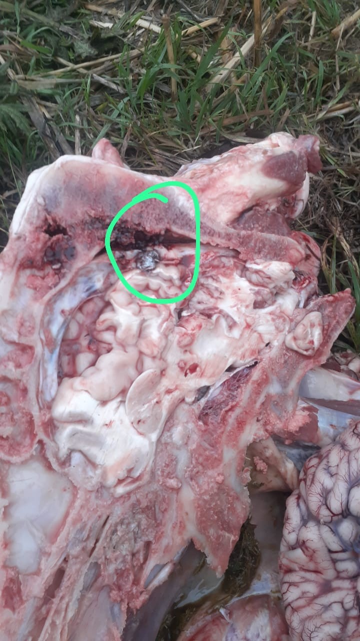 El plomo de la bala en el animal. (Foto: Raúl Fleitas)