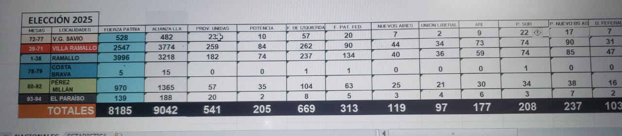 Con estos resultados, Ramallo se sumó a la tendencia provincial, en la que La Libertad Avanza también logró imponerse en la mayoría de los distritos bonaerenses.