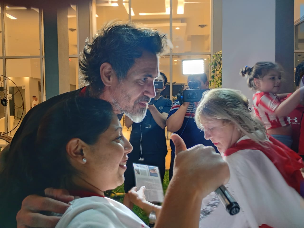 En el momento del arribo, varios simpatizantes locales se acercaron a saludar al entrenador y a los futbolistas. Entre los jugadores, Edwin Cetré fue uno de los que más fotografías y saludos recibió, junto con el propio técnico. Hubo abrazos, celulares en alto y ansiedad por la cercanía histórica de una final que excede fronteras provinciales.