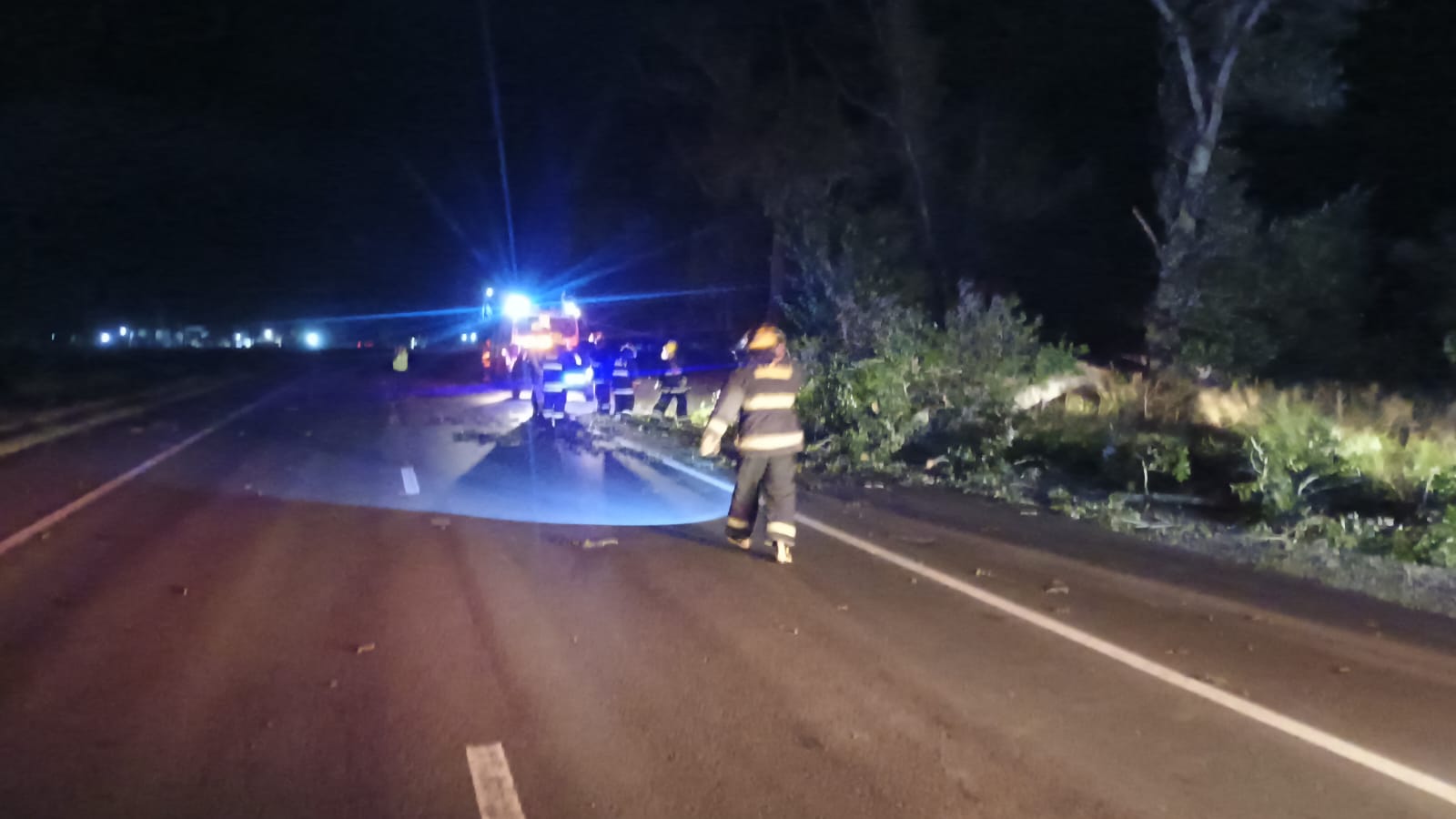 El primer llamado se registró a la 1:40, cuando se alertó sobre la caída de árboles sobre la Ruta 51, desde el kilómetro 11 en dirección a La Violeta. Al arribar al lugar, el personal constató que una dotación de Bomberos Voluntarios de Pérez Millán ya se encontraba trabajando para liberar la calzada y restablecer la circulación vehicular.