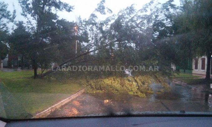 Más de 80mm de lluvia en la ciudad con fuertes ráfagas de viento provocaron caída de muchas ramas y un árbol en Calle belgrano y Colón de Ramallo