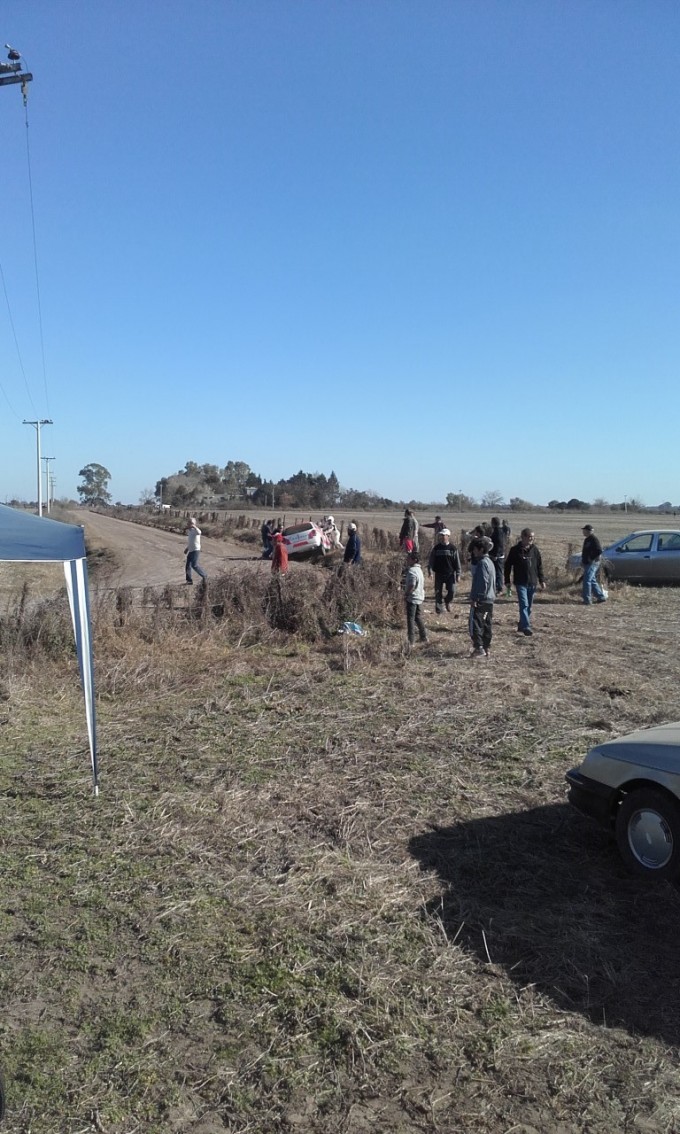 Los ocupantes del Volkswagen gol de Mariano Yaregui se quedaron sin intercomunicador, no vio la curva de la S y se fue a la cuneta. Piloto y copiloto se bajaron del vehículo y corrieron a avisarle a los autos que venían atrás. En diálogo con La Radio Ramallo dijeron estar bien, aunque el auto quedó un poco averiado. Personas que observaban el Rally ayudaron a sacar el auto de la cuneta. Ahora esperan saber si pueden continuar mañana. Información y fotos: Irama Rodríguez.