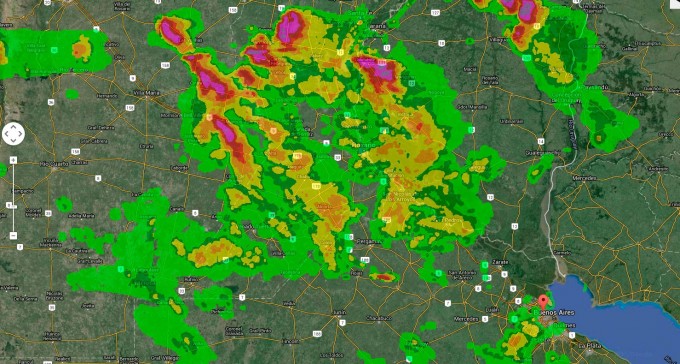 La tormenta y la posible caída de granizo afectarán parcialmente al norte de la provincia de Buenos Aires, sur de Santa Fe y parte de Entre Ríos.