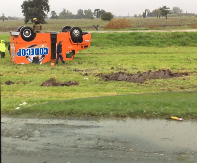 Unos minutos más tarde, un cronista de este medio daba cuenta del vuelco de un camión de caudales de la empresa Codecorp en cercanía de donde se produjo el accidente anterior.