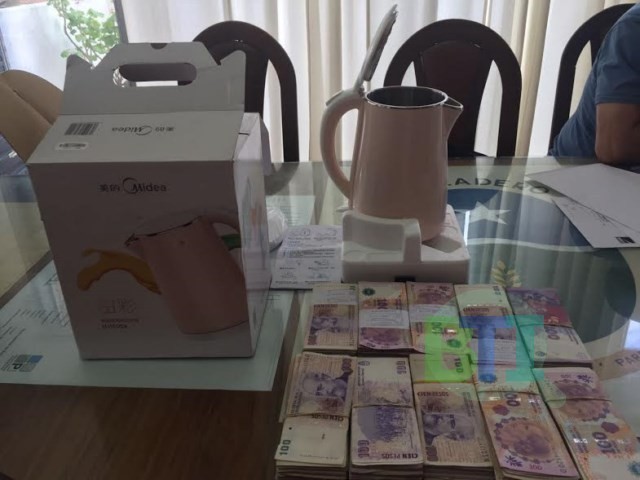 El hombre se retira pero deja la caja, la cual es abierta pensando que tal como lo anunció el oriental se trataba de un regalo por este día en particular, pero para sorpresa de la Jefa Comunal y su secretaria en el interior había una pava eléctrica y varios fajos de billetes en moneda de curso legal.