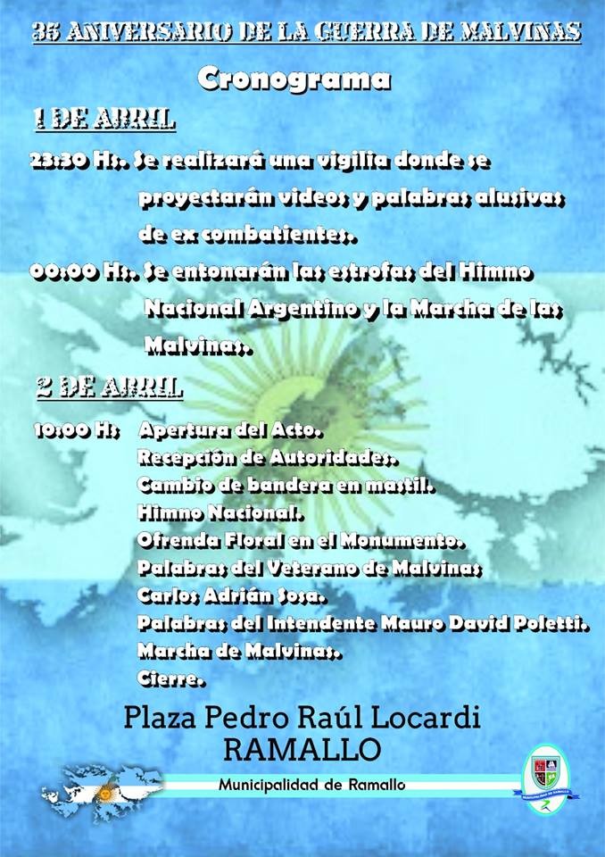 El gobierno local invitar a participar este sábado por la noche de la vigilia en donde se proyectarán videos y ex combatientes brindarán sus testimonios y el domingo desde la 10 de la mañana será el acto oficial del 2 de abril.