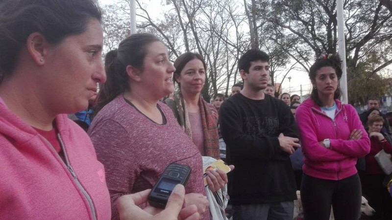 La movilización fue convocada a través de las redes para respaldar al docente cuestionado que hace dos meses fue separado de su cargo hasta tanto la investigación finalice. Además de este apoyo al profesor, aparecieron otros reclamos de los docentes.