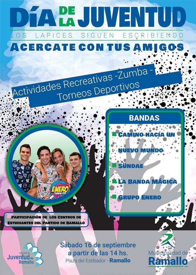 Organizado por el Municipio de Ramallo, este sábado desde las 14 hs se festejará el "Día de la juventud" en la Plaza del Estibador de Ramallo.