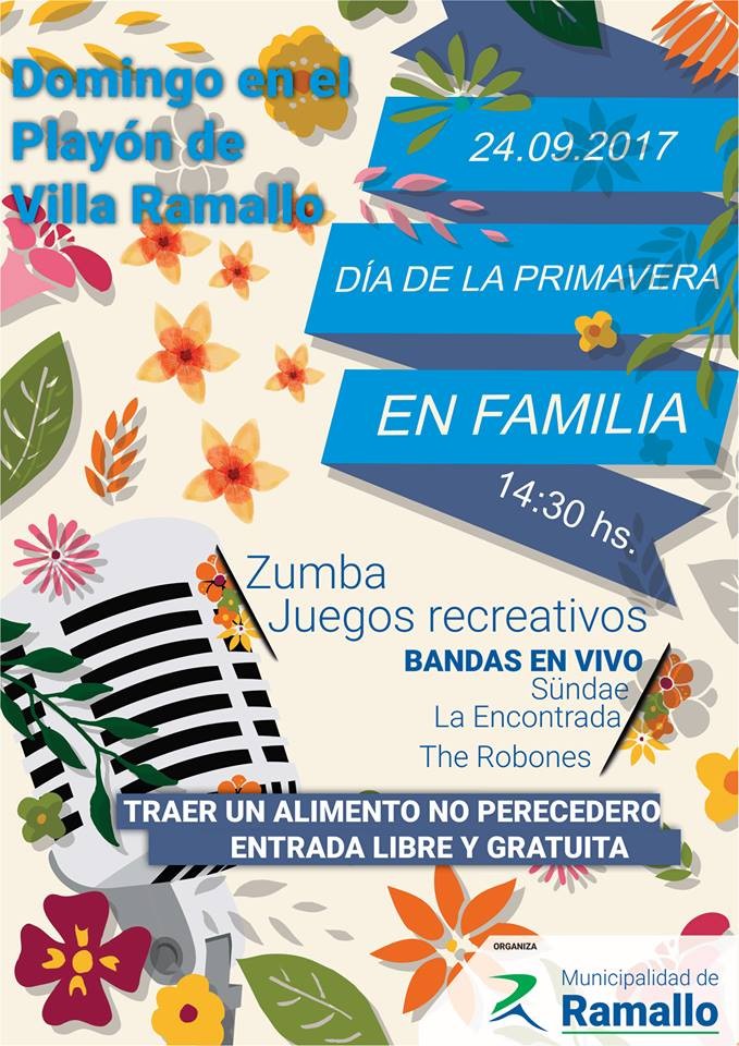 La Municipalidad de Ramallo llevará a cabo los festejos por el Día de la Primavera para toda la familia el domingo 24 desde las 14:30 en el Playón Municipal. Los vecinos podrán acercarse a disfrutar de la gran variedad de ofertas recreativas, bandas musicales y ferias de artesanos.