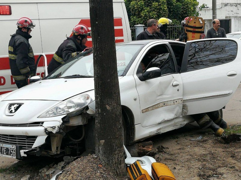 En el lugar trabajó intensamente personal de bomberos voluntarios ya que la tripulante del Peugeot 207 había quedado atrapada en el interior del rodado.