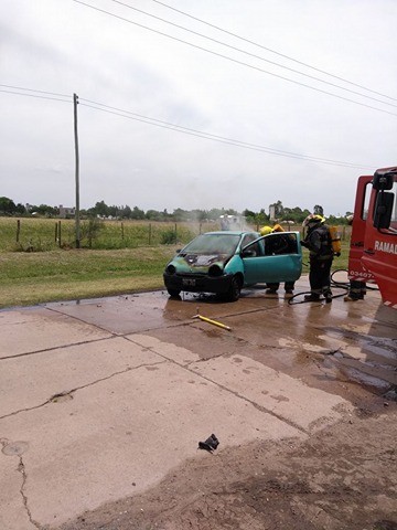 Este viernes alrededor de las 12.50 horas bomberos voluntarios recibió el llamado informando el incendio de un automóvil Renault Twingo en camino al cementerio frente a la quinta de Barberis.