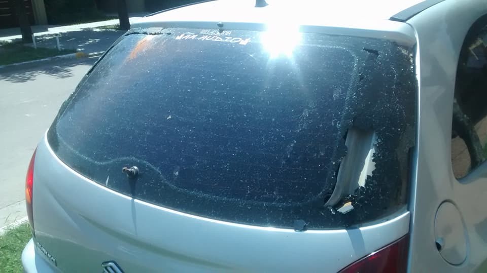 En el caso de Santillán primero le rompieron el parabrisas y unos días después la luneta trasera: "en total me cuesta 10 mil pesos, no podemos vivir así, alguien tiene que hacer algo" dijo indignado.